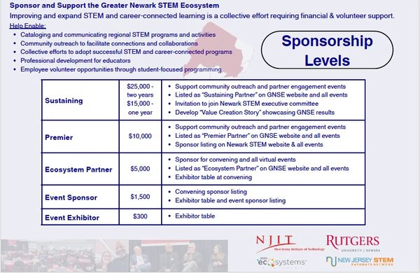 The Greater Newark STEM Ecosystem (Newark STEM, or GNSE), serves the region surrounding Newark, New Jersey, including the counties of Essex, Morris, Passaic, Sussex, Union and Warren. Through understanding the work and activities of our cross-sector partners (our 'shareholders'), we co-design an educational support system that cultivates STEM and Career Ready Skills, to increase the likelihood that all students will be able to join the workforce as STEM literate citizens.