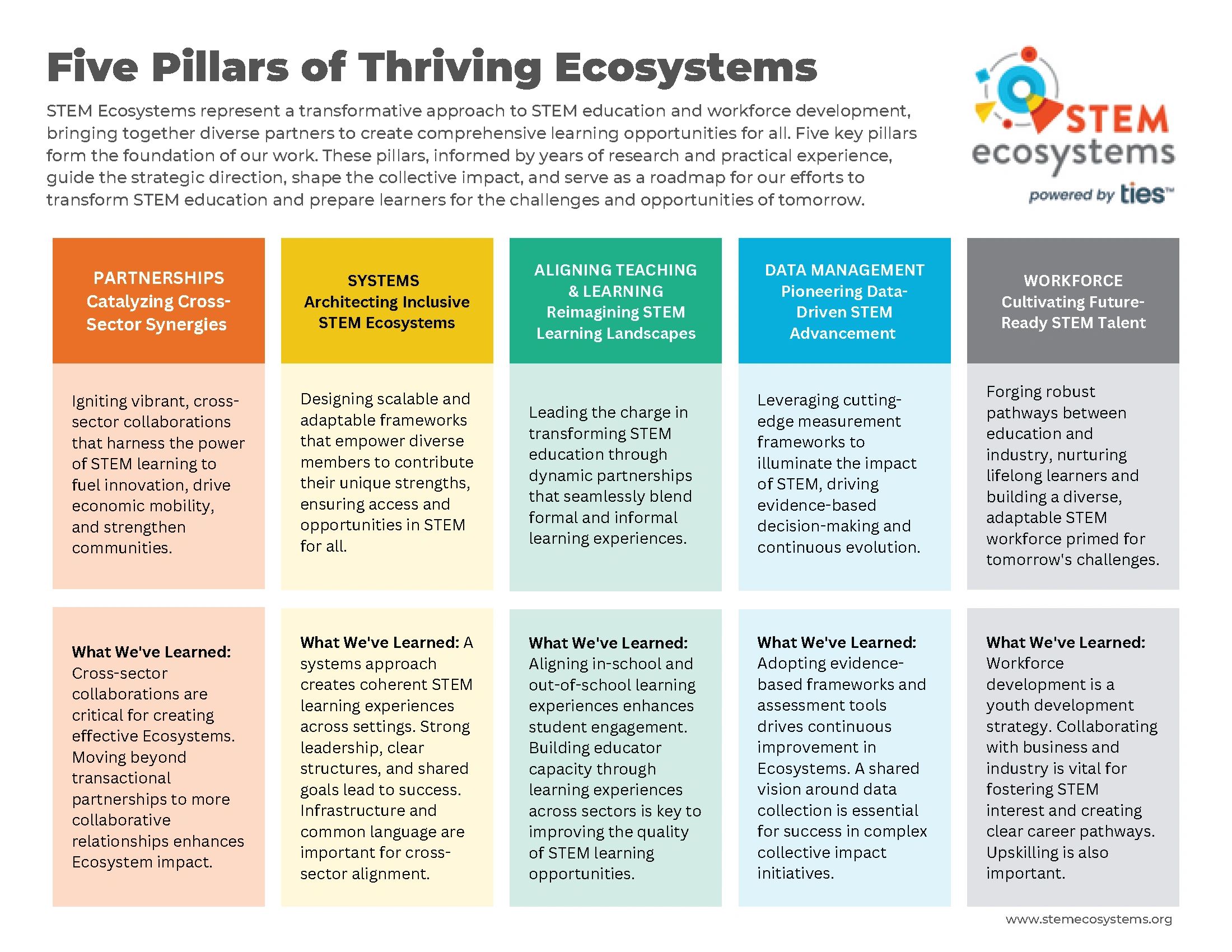 Newark STEM focuses on workforce readiness and envisions a support system that prepares all students to participate in the 21st Century STEM/STEAM workforce. We are organized in alignment with the STEM Learning Ecosystems. As part of this community of practice, Newark STEM aligns with their conception of why ecosystems are needed and what they do.